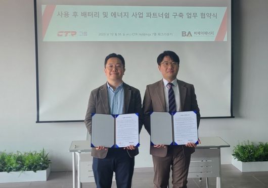 CTR그룹(씨티알그룹)과 비에이에너지는 사용 후 배터리 사업 및 에너지 사업 모델 개발 전략적 파트너쉽 구축을 위한 업무 협약을 12월 6일 체결했다고 밝혔다.