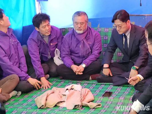 이날 농성장에 있던 참사 유가족 유형우 씨는 참사 당시 자녀가 입고 있던 옷을 보여주며 “지난 400여 일이 어제같이 느껴지고 하루가 1년처럼 느껴진다”며 “하루빨리 유가족들의 마음을 풀어달라”고 홍 원내대표에게 호소했다.