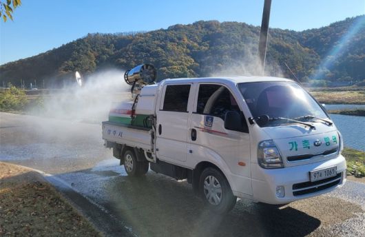 철새도래지 주변 도로와 농가 진출입로 등에 대해 매일 소독을 하고, 항원 검출지역 반경 500m 내 사람과 차량의 출입금지를 위한 통제초소를 설치했다.