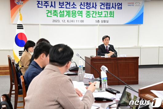 진주시가 6일 시청 상황실에서 '보건소 신청사 건립 및 실시설계 용역 중간보고회'를 열고 있다(진주시 제공). |