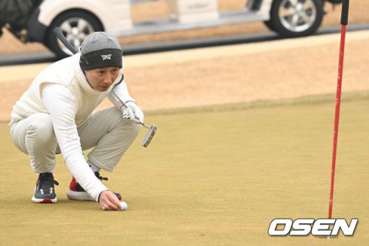 [OSEN=이천, 김성락 기자] 6일 오전 경기도 이천시 H1 클럽에서 제40회 KBO 야구인 골프대회가 열렸다. 4번홀 LG 염경엽 감독이 퍼팅 라인을 살펴보고 있다. 2023.12.06 / ksl0919@osen.co.kr