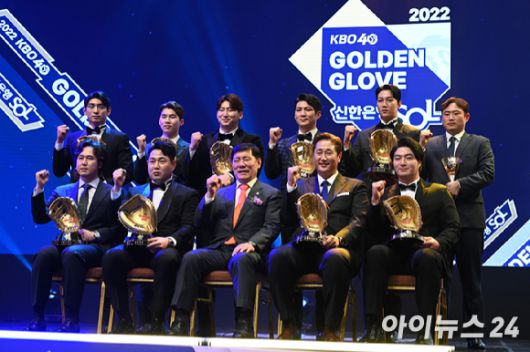 2023 KBO 골든글러브 시상식이 오는 11일 열린다. 사진은 지난해(2022년) 신한은행 SOL KBO 골든글러브 시상식에서 수상자들이 기념촬영을 하고 있는 장면이다. [사진=아이뉴스24 포토 DB] |