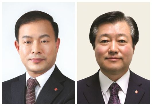 이훈기 롯데 화학군 총괄대표 사장(왼쪽)과 이영구 롯데 식품군 총괄대표 부회장. /롯데 제공 |