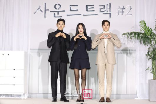 [이데일리 스타in 이영훈 기자] 배우 손정혁, 금새록, 노상현이 6일 오후 서울 중구 앰배서더 서울 풀만 호텔에서 열린 디즈니+ 웹드라마 '사운드트랙#2' 제작발표회에 참석해 포즈를 취하고 있다.
