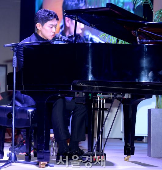 배우 손정혁이 6일 오후 서울 중구 앰배서더 서울 풀만 호텔에서 진행된 디즈니 플러스 오리지널 시리즈 ‘사운드트랙 #2’(극본 정혜승/연출 김희원) 제작발표회에서 피아노를 연주하고 있다.