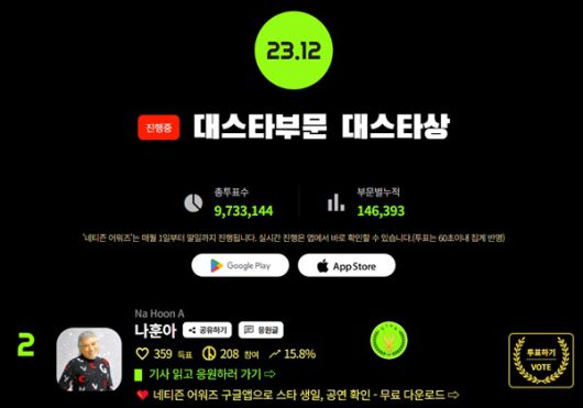 ★스타 인기투표. 국민 투표앱 '네티즌 어워즈'에서 확인하세요