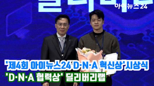 '제4회 아이뉴스24 D·N·A 혁신상' 시상식이 6일 서울 용산구 드래곤시티 호텔 3층 한라홀에서 열린 '아이포럼 2023'에서 개최된 가운데 딜리버리랩이 한국지능정보사회진흥원장상인 'D·N·A 협력상'을 수상했다.[영상=정소희 기자]