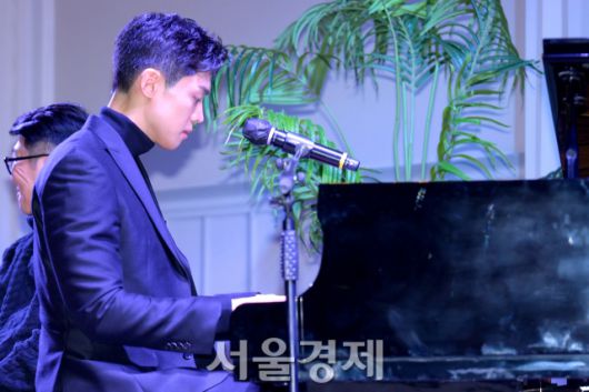배우 손정혁이 6일 오후 서울 중구 앰배서더 서울 풀만 호텔에서 진행된 디즈니 플러스 오리지널 시리즈 ‘사운드트랙 #2’(극본 정혜승/연출 김희원) 제작발표회에서 피아노를 연주하고 있다.