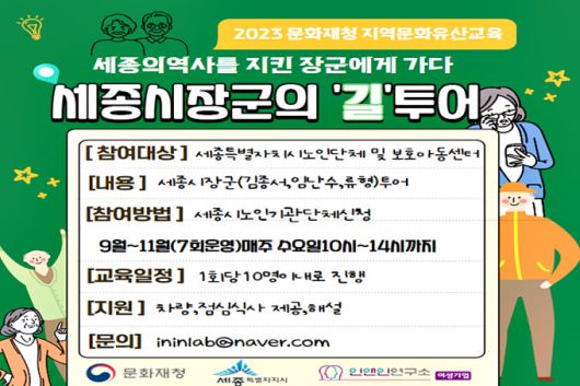 올해 우수사례로 선정된 '세종의 역사를 지킨 장군에게 가다'는 임난수 은행나무와 김종서 장군 묘, 장군면 충렬사 등 문화유산을 답사하며 지역 문화역사 유적의 의미를 살펴보는 프로그램이다.