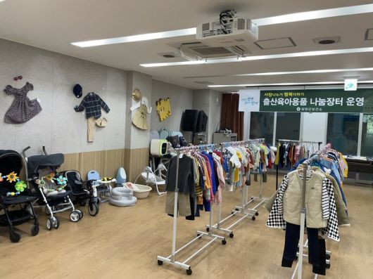 나눔장터는 출산가정과 임산부를 대상으로 경제적 부담을 덜어주고자 사용하지 않는 육아용품을 기증받아 운영한다.