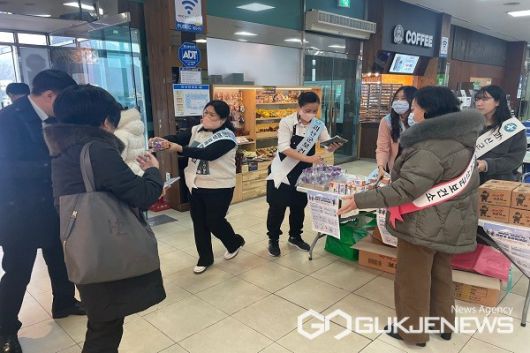 (괴산=국제뉴스) 이재기 기자 = 충북 괴산군(군수 송인헌)은 본격적으로 한파가 시작됨에 따라 지역주민의 한랭질환을 예방하기 위해 6일 괴산휴게소(양평 방향)에서 한랭질환 예방 캠페인을 실시했다고 밝혔다.