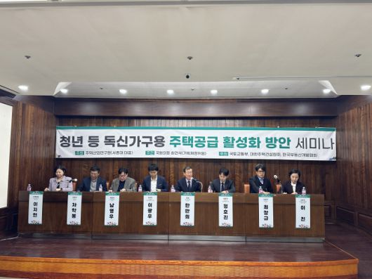 6일 주택산업연구원은 국회도서관 소회의실에서 국회 기획재정위원회소속인 송언석 국민의힘 의원 주관으로 열린 세미나에서 청년 등 독신 가구용 주택공급 활성화 대책이 시급하다고 밝혔다.
