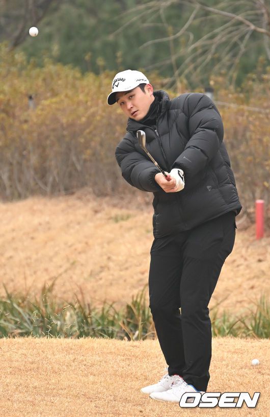[OSEN=이천, 김성락 기자] 6일 오전 경기도 이천시 H1 클럽에서 제40회 KBO 야구인 골프대회가 열렸다. LG 최원태가 어프로치샷을 하고 있다. 2023.12.06 / ksl0919@osen.co.kr