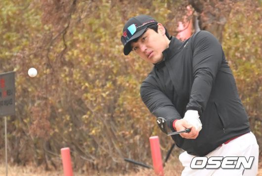 [OSEN=이천, 김성락 기자] 6일 오전 경기도 이천시 H1 클럽에서 제40회 KBO 야구인 골프대회가 열렸다. LG 박동원이 어프로치샷을 하고 있다. 2023.12.06 / ksl0919@osen.co.kr