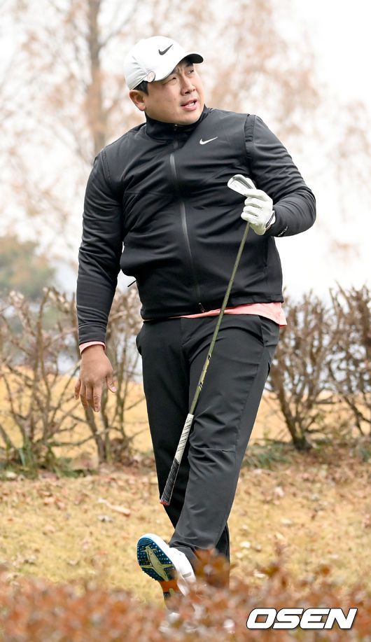 [OSEN=이천, 김성락 기자] 6일 오전 경기도 이천시 H1 클럽에서 제40회 KBO 야구인 골프대회가 열렸다. LG 허도환이 티샷을 마친 뒤 타구를 확인하고 있다. 2023.12.06 / ksl0919@osen.co.kr