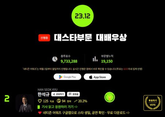 ★스타 인기투표. 국민 투표앱 '네티즌 어워즈'에서 확인하세요