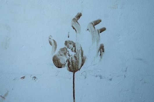 2023년 11월9일 가자지구 근처 이스라엘 키부츠 니르 오즈의 대피소 벽에 피가 묻어 있는 손자국이 남아 있다. AP 연합뉴스 |