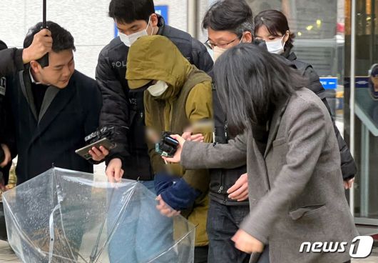 (서울=뉴스1) 임윤지 기자 = 아내를 둔기로 내리쳐 숨지게 한 혐의를 받는 전직 변호사 A씨가 6일 서울 중앙지법에서 열리는 영장실질심사를 받기 위해 성북경찰서를 나서고 있다. A씨는 지난 3일 오후 7시50분쯤 서울 종로구 사직동의 한 주상복합아파트에서 부부싸움 중 아내를 둔기로 폭행해 숨지게 한 혐의를 받는다. 2023.12.6/뉴스1