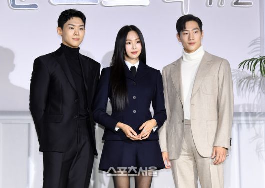 배우 손정혁(왼쪽)과 금새록(가운데), 노상현이 6일 서울 중구 앰버서더서울풀만호텔에서 진행된 디즈니+ ‘사운드트랙 #2’ 제작발표회에서 취재진을 향해 포즈를 취하고 있다. 박진업기자 upandup@sportsseoul.com |