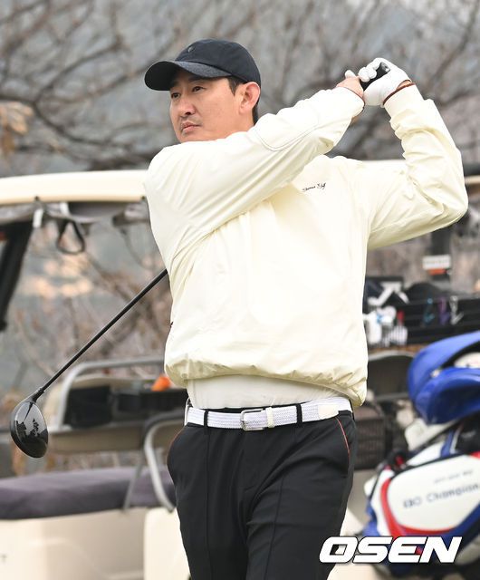 [OSEN=이천, 김성락 기자] 6일 오전 경기도 이천시 H1 클럽에서 제40회 KBO 야구인 골프대회가 열렸다. LG 해설위원 박용택이 티샷을 하고 있다. 2023.12.06 / ksl0919@osen.co.kr