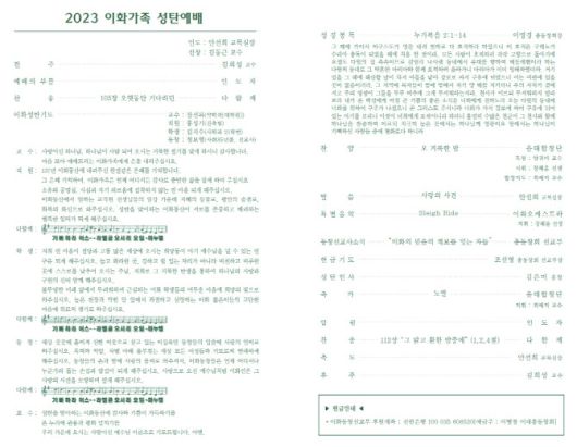 2023 이화가족 성탄예배 식순. (사진 제공=이화여대) |