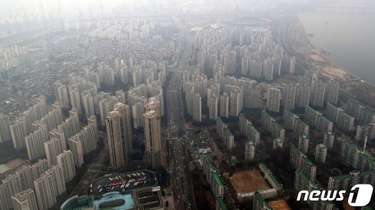 (서울=뉴스1) 박세연 기자 = 부동산 시장이 침체하며 서울 강남 지역 단지에서 하락 거래가 이어지고 있다. 6일 국토교통부 실거래가 공개시스템에 따르면 서울 강남구 대치동 대치삼성 전용 59㎡는 지난달 16일 12억원에 중개 거래됐다. 같은 크기는 지난달 17억원에 거래됐는데 한 달도 안 돼 5억원이 하락한 셈이다. 사진은 이날 송파구 롯데월드타워 서울스카이에서 바라본 서울 아파트단지 모습. 2023.12.6/뉴스1