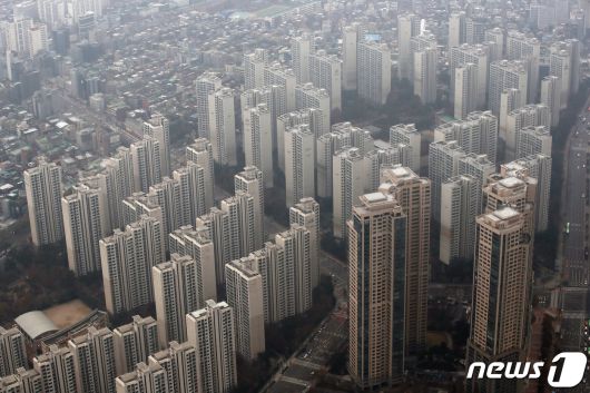 (서울=뉴스1) 박세연 기자 = 부동산 시장이 침체하며 서울 강남 지역 단지에서 하락 거래가 이어지고 있다. 6일 국토교통부 실거래가 공개시스템에 따르면 서울 강남구 대치동 대치삼성 전용 59㎡는 지난달 16일 12억원에 중개 거래됐다. 같은 크기는 지난달 17억원에 거래됐는데 한 달도 안 돼 5억원이 하락한 셈이다. 사진은 이날 송파구 롯데월드타워 서울스카이에서 바라본 서울 아파트단지 모습. 2023.12.6/뉴스1