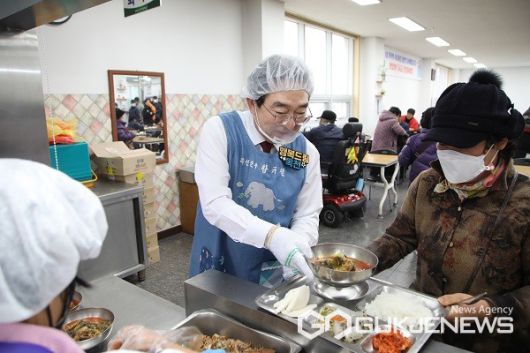 한편 이날 황규철 옥천군수도 직접 급식 봉사에 참여해 이용자들의 건강과 안부를 살폈다.