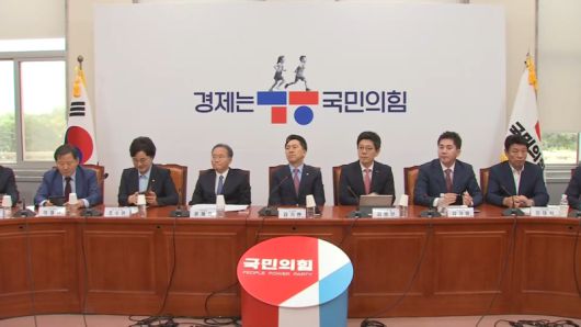 | 지난 9월 4일 당시 국회에서 열린 국민의힘 최고위원회의. 현수막에 'ㄱㅎ' 로고가 사용됐다. / 사진 = MBN |