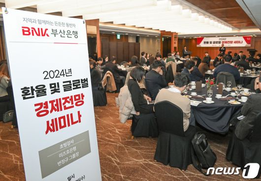 (부산=뉴스1) 조아서 기자 = BNK부산은행은 6일 롯데호텔 부산에서 부·울·경 지역의 수출입 업체 주요 담당자를 대상으로 '2024 환율 및 글로벌 경제 전망 세미나'를 개최했다고 밝혔다.