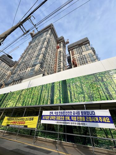 현산 관계자는 "안전한 해체 공사와 빠른 준공을 기다리고 있는 예비 입주자, 현장 주변 주민들이 공사 지연을 좌시할 수 없다고 판단해 현수막을 게시한 것으로 보인다"고 설명했다.
