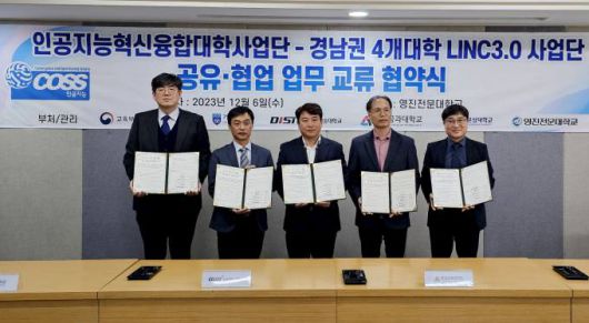 영진전문대·거제대·동원과학기술대·연암공과대·창원문성대 등 5개 대학은 6일 ‘경남권 4개 대학 LINC3.0 사업단·혁신지원사업단-인공지능 혁신융합대학사업단 간 공유·협업 업무교류’ 운영을 위한 협약을 체결했다.