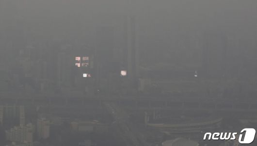 미세먼지에 광고 전광판만 흐리게 보이는 서울도심