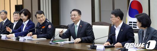 (세종=뉴스1) 김기남 기자 = 방기선 국무조정실장(오른쪽 두번째)이 6일 오후 세종시 정부세종청사에서 열린 외청장 회의에 참석하며 인사를 하고 있다. 2023.12.6/뉴스1kinam@news1.krCopyright ⓒ 뉴스1. All rights reserved. 무단 전재 및 재배포, AI학습 이용 금지.