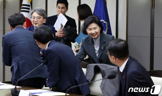 (세종=뉴스1) 김기남 기자 = 6일 오후 세종시 정부세종청사에서 열린 외청장 회의에 앞서 지영미 질병관리청장을 비롯한 참석자들이 인사를 나누고 있다.2023.12.6/뉴스1kinam@news1.krCopyright ⓒ 뉴스1. All rights reserved. 무단 전재 및 재배포, AI학습 이용 금지.