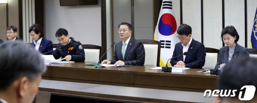 (세종=뉴스1) 김기남 기자 = 방기선 국무조정실장(가운데)이 6일 오후 세종시 정부세종청사에서 열린 외청장 회의를 주재하며 모두발언 하고 있다.2023.12.6/뉴스1