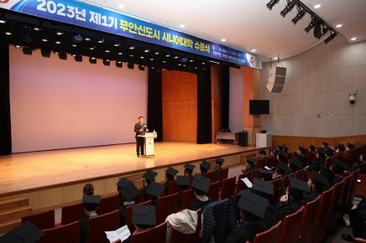 [스포츠서울/조광태기자] 전남 무안군(군수 김산)은 지난 5일 남악복합문화센터 대강당에서 무안군수를 비롯한 내빈과 졸업생 등 70여 명이 참석한 가운데 제1기 무안 신도시 시니어대학 수료식을 했다.