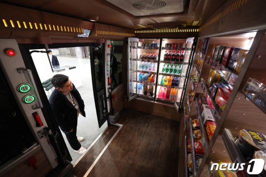 (서울=뉴스1) 신웅수 기자 = 6일 서울 강남구 코엑스에서 열린 2023 대한민국 산업기술 연구개발(R&D) 대전을 찾은 관람객이 자율주행 차량 내에 마련된 언택트 편의점을 살펴보고 있다. 오는 8일까지 열리는 이번 행사는 한국 산업 기술 발전의 역사를 돌아보고 향후 발전 방향을 모색하기 위해 마련됐다. 2023.12.6/뉴스1