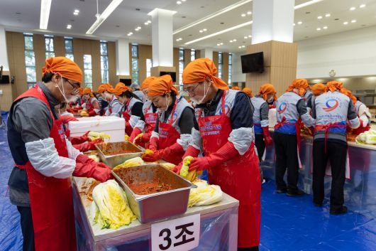 이번 행사를 통해 공사는 결손가정, 저소득층 등 취약계층 300여가구에 김장 김치 3000㎏을 전달했다. 함진규 사장, 이지웅 노조위원장을 비롯한 임직원 200여명이 직접 담근 김치다.