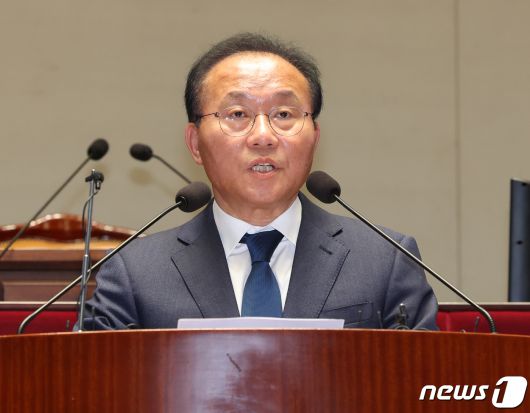 (서울=뉴스1) 송원영 기자 = 윤재옥 국민의힘 원내대표가 6일 서울 여의도 국회에서 열린 정책의원총회에서 발언을 하고 있다. 2023.12.6/뉴스1sowon@news1.krCopyright ⓒ 뉴스1. All rights reserved. 무단 전재 및 재배포, AI학습 이용 금지.