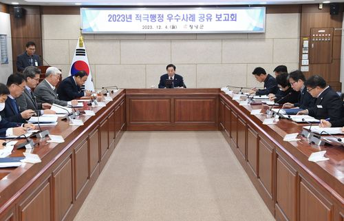 창녕군은 군청 군정회의실에서 적극행정의 성과를 제고하고 우수사례를 공유하기 위해 성낙인 군수와 간부 공무원이 참석한 가운데 적극행정 공유 보고회를 개최했다고 6일 밝혔다.