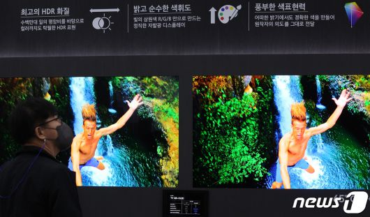 (서울=뉴스1) 신웅수 기자 = 6일 서울 강남구 코엑스에서 열린 2023 대한민국 산업기술 연구개발(R&D) 대전을 찾은 관람객들이 삼성디스플레이의 QD-OLED 텔레비전을 살펴보고 있다. 오는 8일까지 열리는 이번 행사는 한국 산업 기술 발전의 역사를 돌아보고 향후 발전 방향을 모색하기 위해 마련됐다. 2023.12.6/뉴스1