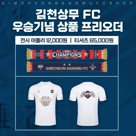 경북 김천상무프로축구단이 2023시즌 우승기념 상품으로 프리오더와 김천상무 럭키박스를 한정판매 한다.
