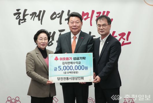 5일 당진시청 7층 접견실에서 열린 이번 나눔캠페인 성금 전달식에서 정제의 당진전통시장상인회장은 "당진시 인구 17만 돌파 소식에 다 같이 기뻐했다. 도시가 커 갈수록 소외된 이웃들을 위한 도움은 여전히 필요할 것이다"라며 김장 김치 판매수익금 500만 원을 전달했다.