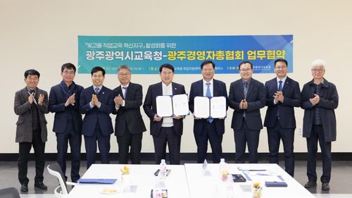 광주시교육청이 지난 5일 '빛고을 직업교육 혁신지구' 사업 활성화를 위해 광주경영자총협회와 업무협약을 체결했다.