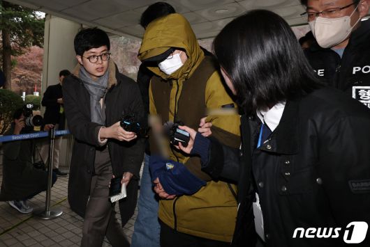 (서울=뉴스1) 구윤성 기자 = 둔기로 아내를 살해한 혐의를 받는 대형 로펌 출신 변호사 A씨가 6일 오후 서울 서초구 서울중앙지방법원에서 열린 구속 전 피의자 심문(영장실질심사)에 출석하고 있다. 검사 출신 전직 다선 국회의원의 아들인 것으로 알려진 A 씨는 지난 3일 오후 7시 50분경 서울 종로구 한 주상복합아파트에서 부부싸움을 하다가 아내를 둔기로 폭행해 결국 사망에 이르게 한 혐의를 받는다. 2023.12.6/뉴스1