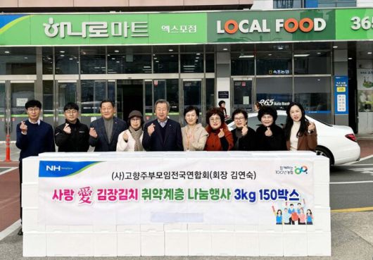 (사)고향주부모임중앙회(회장 김연숙)는 6일 속초시에서 한국농협김치 450kg(3kg 150박스)을 강원도 장애인복지관 속초분관, (사)한국농아인협회 속초지회, 취약농가 20가구에 기탁했다.