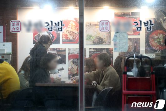 (서울=뉴스1) 이승배 기자 = 11월 소비자물가가 3.3%를 기록하며 넉 달 만에 감소 전환했지만 가공식품 부문 소비자물가지수는 119.48로 작년 같은 기간보다 5.1% 오른 것으로 나타났다. 외식 물가 상승률 역시 4.83%로, 4.77%였던 10월보다 올랐다. 이로써 외식 물가는 30개월, 가공식품 물가는 24개월 연속 전체 물가 상승률을 상회하고 있다. 세부 항목으로 가공식품 중에는 소금이 21.3%, 참기름 20.8% 올랐고, 외식 물가는 햄버거가 16.9%, 김밥 6.9%가 올랐다. 6일 서울 중구 명동의 한 음식점을 찾은 시민들이 식사를 하고 있다. 2023.12.6/뉴스1