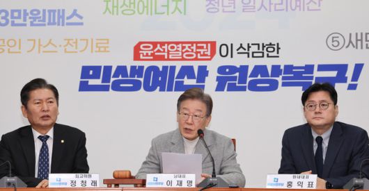 이재명 더불어민주당 대표와 홍익표 원내대표가 6일 서울 여의도 국회에서 열린 최고위원회의에 참석하고 있다. 이재명 더불어민주당 대표가 6일 서울 여의도 국회에서 열린 최고위원회의에서 모두 발언을 하고 있다. 이제원 선임기자 ⓒ 세상을 보는 눈, 세계일보
