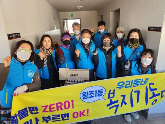 왕조1동‘우리동네 복지기동대’는 통장 등 17명으로 구성되어 취약계층의 생활 불편 해소를 위해 주거 환경 개선을 지원하고 있다.